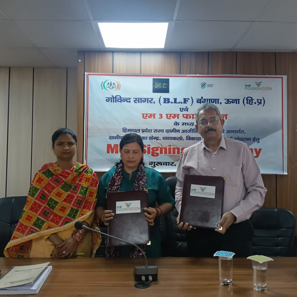 ग्रामीण महिलाओं एवं युवाओं के सशक्तिकरण की दिशा में एक महत्वपूर्ण पहल करते हुए एमथ्रीएम फाउंडेशन ने पायल@40 अभियान के अंतर्गत बंगाणा ब्लॉक में गोविंद सागर ब्लॉक लेवल फेडरेशन के साथ समझौता ज्ञापन (एमओयू) पर हस्ताक्षर किए। यह समझौता हिमाचल प्रदेश राज्य ग्रामीण आजीविका मिशन के तहत थानाकलां में ग्रामीण आजीविका केंद्र (आरएलसी) के संचालन हेतु किया गया।