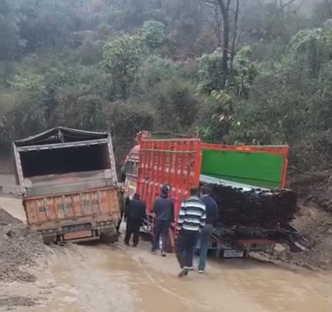 घुमारवीं–सरकाघाट स्टेट हाईवे पर लगातार दो दिनों से हो रही मूसलाधार बारिश ने जनजीवन को बुरी तरह प्रभावित कर दिया है। शुक्रवार सुबह स्थिति उस समय और गंभीर हो गई जब बारिश के कारण सड़क का एक हिस्सा दलदल में तब्दील हो गया और दो भारी भरकम ट्रक बीच सड़क में ही फंस गए। ट्रकों के फंसते ही हाईवे पूरी तरह बाधित हो गया, जिससे दोनों ओर वाहनों की लंबी-लंबी कतारें लग गईं और यातायात पूरी तरह ठप हो गया।