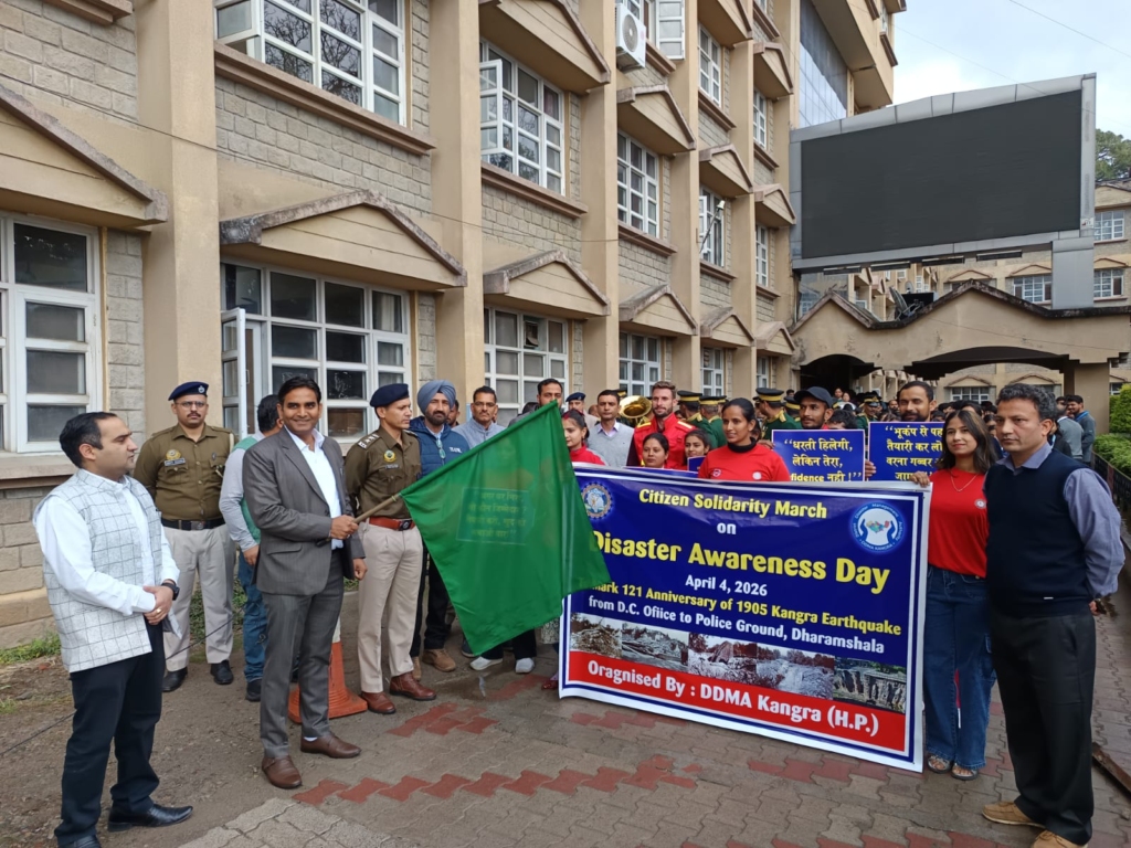 धर्मशाला में आज 4 अप्रैल 1905 के विनाशकारी कांगड़ा भूकंप की बरसी पर आपदा प्रबंधन को लेकर एकजुटता मार्च यानी सॉलिडैरिटी मार्च निकाला गया। इस दौरान प्रशासन और आम लोगों को आपदा के प्रति जागरूक करने का संदेश दिया गया।