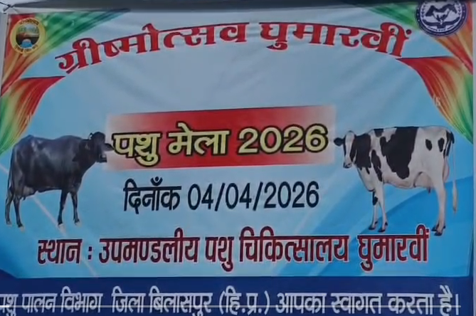 राज्य स्तरीय ग्रीष्मोत्सव-2026 के तहत घुमारवीं में पशु चिकित्सालय परिसर में भव्य पशु मेले का आयोजन किया गया। मेले में उन्नत नस्लों के पशु आकर्षण का केंद्र बने रहे और बड़ी संख्या में पशुपालकों ने उत्साहपूर्वक भाग लिया। कार्यक्रम में मुख्य अतिथि के रूप में सोनिका धर्माणी ने शिरकत की। मेले में पशुपालन के प्रति क्षेत्रीय लोगों की बढ़ती जागरूकता साफ नजर आई। प्रतियोगिता में कुल 102 गाय एवं भैंस तथा 72 भेड़-बकरी शामिल हुए। विभिन्न वर्गों में आयोजित प्रतियोगिताओं में गाय-भैंस की 18 श्रेणियों और भेड़-बकरी की कई श्रेणियों में पशुपालकों ने अपने पशुओं का उत्कृष्ट प्रदर्शन किया। इस अवसर पर सहायक निदेशक पशुपालन विभाग बिलासपुर डॉ. के. एल. शर्मा सहित विभाग के अन्य पशु चिकित्सक, फार्मासिस्ट और कर्मचारी उपस्थित रहे। उन्होंने आयोजन को सफल बनाने में महत्वपूर्ण भूमिका निभाई।वही मुख्य अतिथि सोनिका धर्माणी ने अपने संबोधन में कहा कि पशुपालन ग्रामीण अर्थव्यवस्था की रीढ़ है। ऐसे मेले पशुपालकों को नई तकनीकों से जोड़ने, उनकी आय बढ़ाने और उन्हें प्रोत्साहित करने का प्रभावी माध्यम हैं।