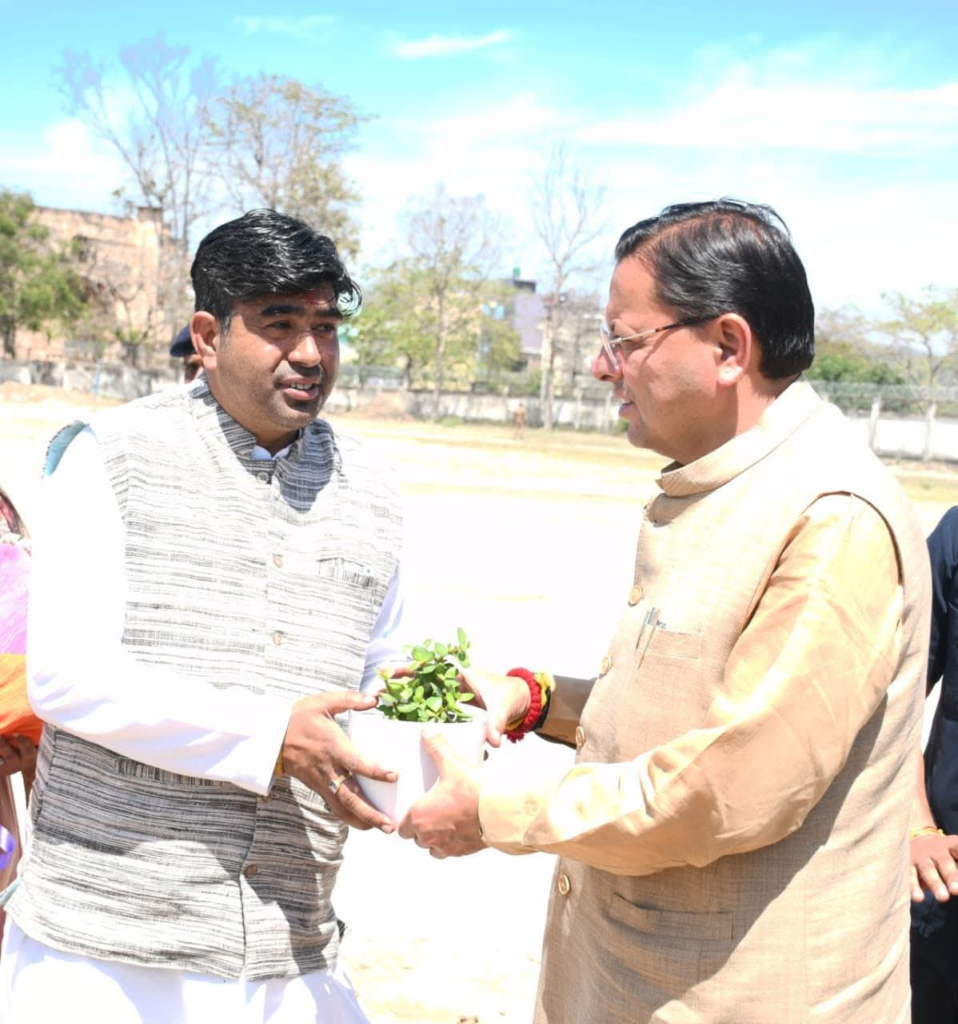 राज्य स्तरीय जलागम परिषद उपाध्यक्ष शंकर कोरंगा ने मुख्यमंत्री पुष्कर सिंह धामी का पौधा भेंट कर स्वागत किया