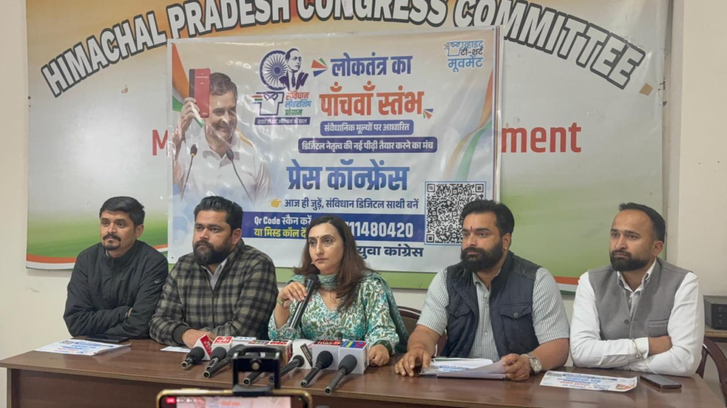 शिमला के राजीव भवन में आज भारतीय युवा कांग्रेस द्वारा “संविधान लीडरशिप प्रोग्राम” का औपचारिक शुभारंभ किया गया। यह कार्यक्रम राष्ट्रीय प्रभारी मनीष शर्मा और राष्ट्रीय अध्यक्ष उदय भानु चिब के निर्देशानुसार आयोजित किया गया। कार्यक्रम को राष्ट्रीय प्रवक्ता शुभ्रा ज़िंटा ने प्रेस वार्ता के माध्यम से लॉन्च किया।